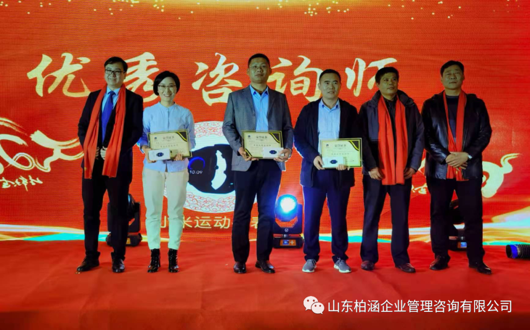 獲得年度《優(yōu)秀管理咨詢師》稱號的是柏涵管理法務(wù)咨詢師韓磊、財務(wù)咨詢師楊旭、生產(chǎn)倉儲管理咨詢師聶方慶,由沙溝香油集團總經(jīng)理王欣、山東坤隆工程科技有限公司董事長趙穎、柏涵管理咨詢項目總監(jiān)李成好共同為優(yōu)秀咨詢師頒獎。