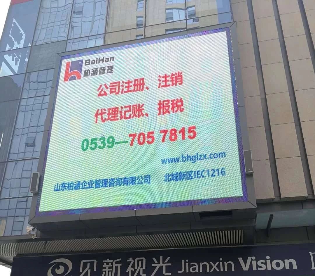 下圖為柏涵公司在臨沂市魯商中心投放的電子屏廣告。